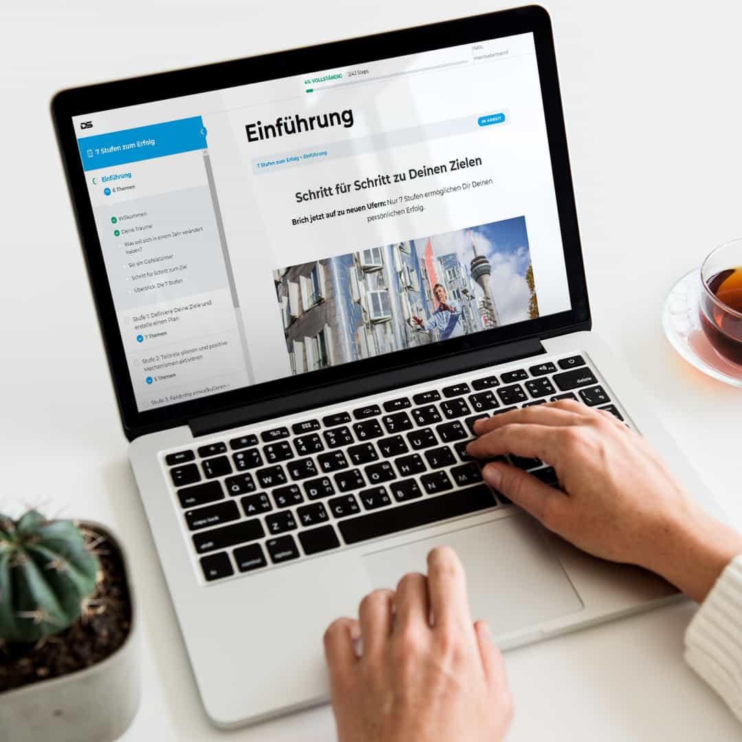 Jetzt ist dein Life Coach immer an deiner Seite und begleitet dich auf deinen 7 Stufen zum persönlichen Erfolg! Mit meinem Onlinekurs kannst du deine Ziele verwirklichen, Erfolgsstrategien erproben und dich Schritt für Schritt deinem Traum nähern.
